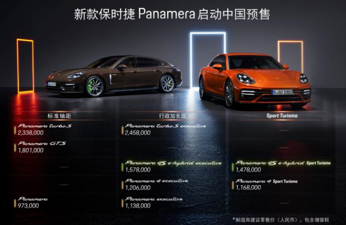 Panamera,911之外的另一款保时捷明星车型,其将豪华轿车的舒适性,实用性,以及跑车的运动性集于一身,也被车迷誉为地表“最速”、“最美”四门量产轿车。日前,新款Panamera全球首发。同时,新车正式在中国开启预售,官方公布了部分(共9款)车型的建议售价(含增值税),区间为97.3-245.8万元。