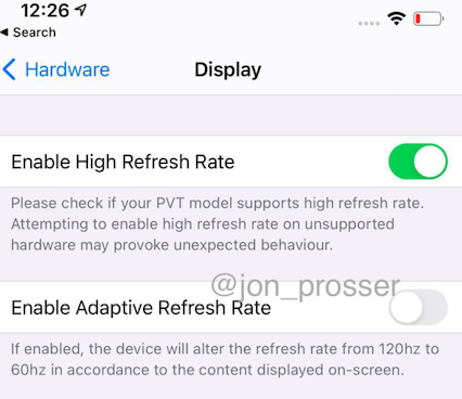 值得一提的是,Jon Prosser 后续还发布了一个在 PVT 型号上评估 iOS 软件的视频,视频中显示了与上述两张图有关的设置——如果视频是真的,很可能这些截图都是从有权使用 PVT iPhone 型号的人那里获得的。