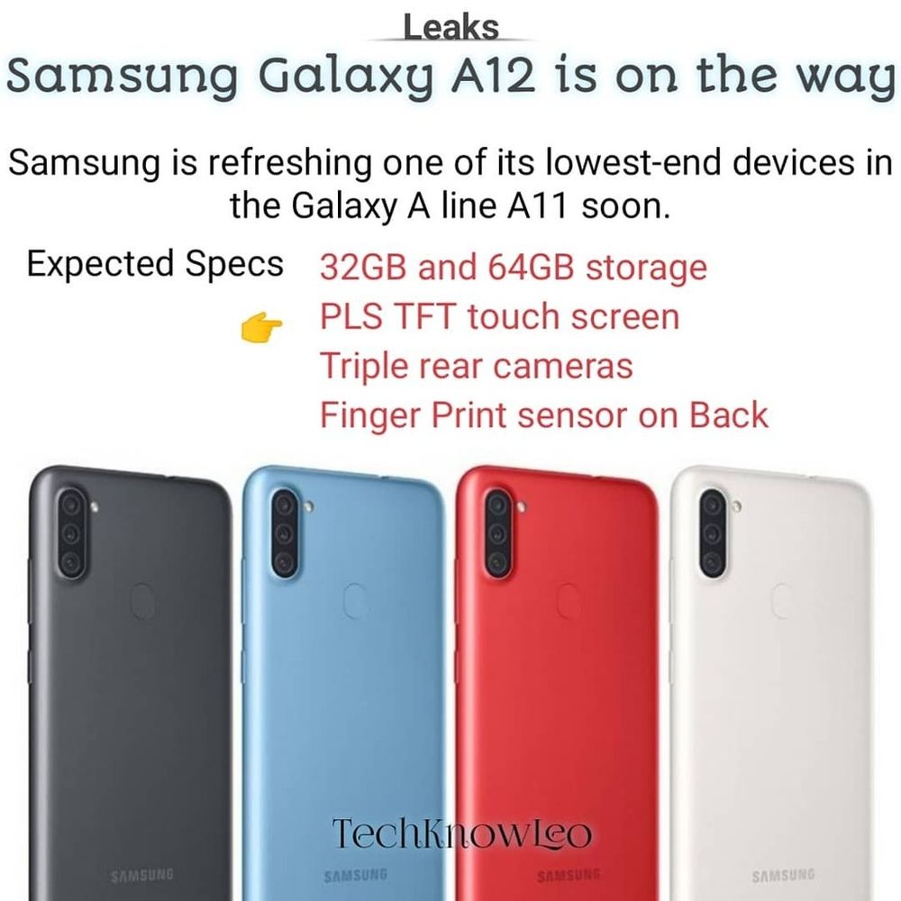 今年早些时候发布的 Galaxy A11 即将迎来继任者--A12。援引外媒 SamMobile 报道,Galaxy A12 型号为“SM-A125F”,会有 32GB 和 64GB 两种存储选项,配备三颗摄像头、LCD 屏幕和物理指纹传感器。