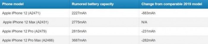 好像是这样的,根据此前韩国认证机构泄露的数据显示,5.4英寸的iPhone 12为2227mAh,6.1英寸的iPhone 12 Max为2775mAh,6.1英寸的iPhone 12 Pro为2815mAh,6.7英寸的iPhone 12 Pro Max为2687mAh。而同样6.1英寸屏幕大小的iPhone 11,配备了3110mAh电池,缩水幅度达到近30%,不知苹果对于A14+IOS 14的续航表现有几成把握?