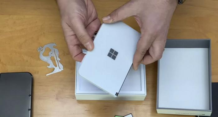 Surface Duo没有专用的手写笔,但是兼容微软笔,微软并没有在包装盒中包括一支微软手写笔。Surface Duo铰链在大多数角度下都非常平滑和稳定,而时尚的书本式设计在握持方面感觉更好。