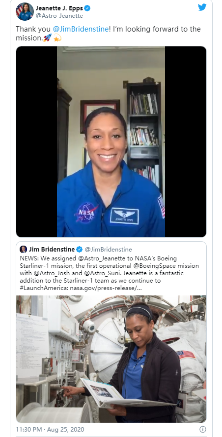 Epps最初被分配到一个在2018年发射到国际空间站的任务,但被从任务中撤出。NASA并未对这一人事问题发表评论,也没有给出改变的原因。Epps本周在Twitter上表示,她很期待这次任务。
