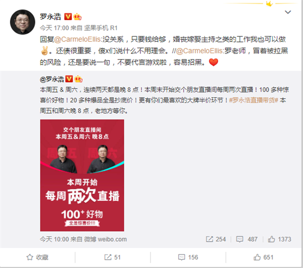 就在三天前,重庆房地产开发商葛伟因公司破产选择直播带货还债的消息引发关注。有着相似经历的锤子科技CEO罗永浩对此点赞,表示虽然公司破产有可能不需要还,但是能还的都是好汉。