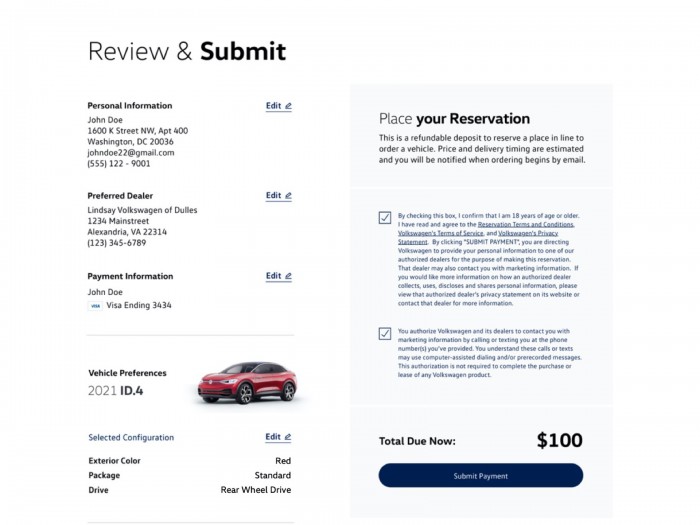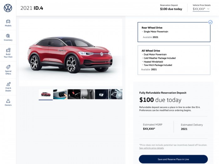 尽管大众汽车的预订系统很花哨,而且预订者也要缴纳保证金,但事实上,其仍在跟经销商达成购买协议。因此,最终的购买价格将由该经销商决定,而大众网站上列出的数字也不会出现在最终文件中。