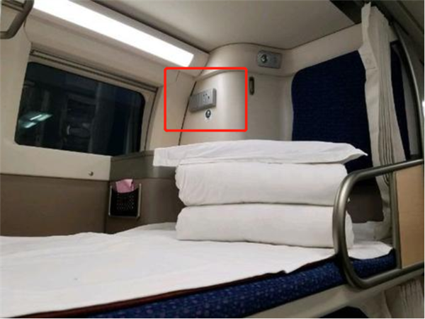 而对于传统横向卧铺动车组,车型不同,充电插座也不太相同,一般在卧铺中间小桌的下方或“床尾”的位置。