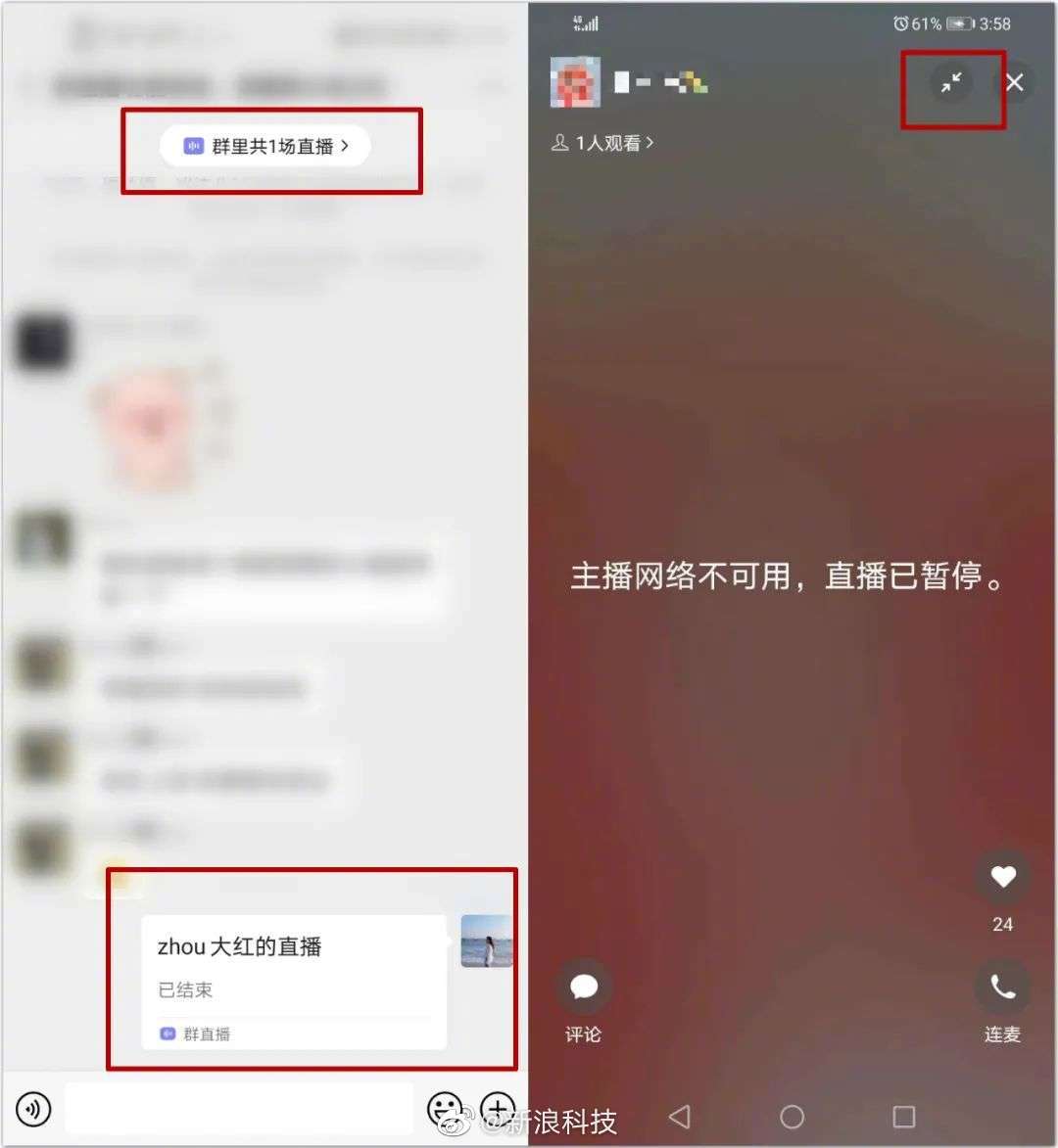 目前,截图显示“群直播”仅支持和群内其他成员实时视频。直播发起后,会自动在群中发出直播链接,并在群聊顶部显示“群里共x场直播”。