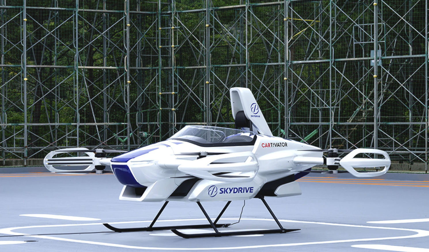 SkyDrive表示,SD-03的洁白颜色的灵感来自鸟儿和天空中的浮云。为了进行公开演示,8月25日,这架飞机在丰田公司位于爱知县的2.5英亩(1公顷)试验场上空飞行了约4分钟。一名人类飞行员负责控制,但计算机系统负责飞行稳定性和安全。