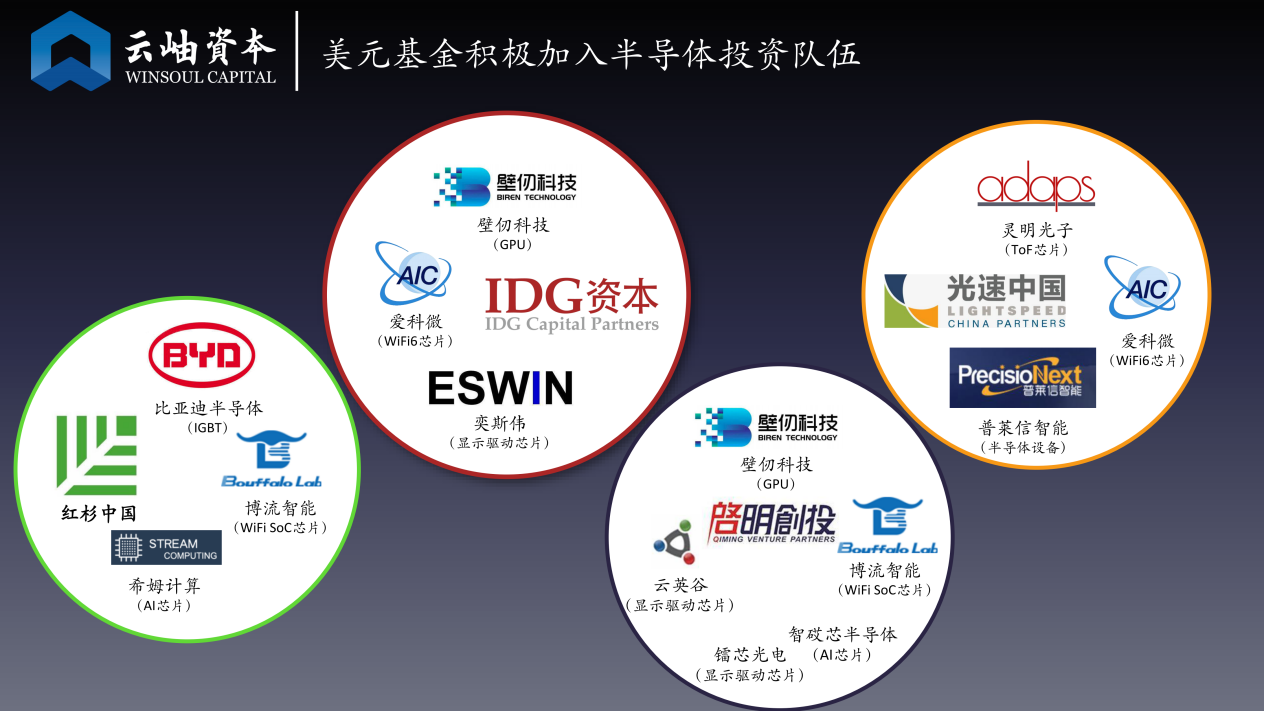 头部VC机构中,许多原本不投半导体的美元基金都相继加入半导体投资大军。云岫资本的很多项目中都能看到美元基金的身影,红杉、IDG、启明、源码、红点、高瓴等都越来越活跃。