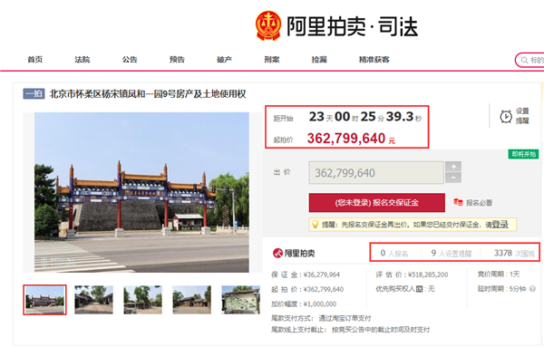 22年前的一部《还珠格格》,让赵薇、林心如、苏有朋、范冰冰等演员红遍大江南北,如今这部电视剧的取景地要被拍卖了。日前,据阿里拍卖网站显示,北京市怀柔区杨宋镇凤和一园9号房产及土地使用权将被拍卖。拍卖将由北京市第三中级人民法院举办,3.62亿起拍,时间定为2020年9月21日10时至9月22日10时。