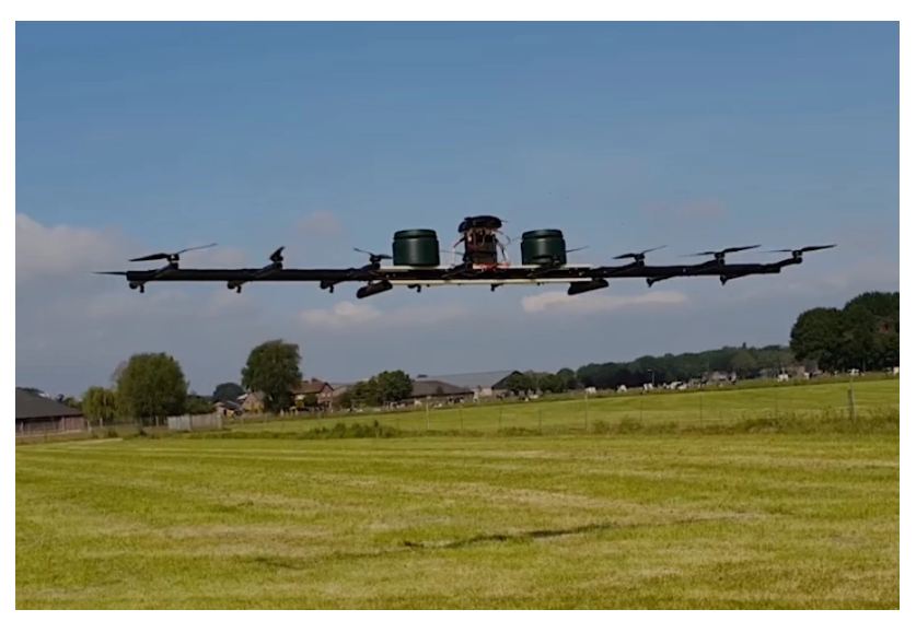 作为一种替代方案,Drone4Agro公司制造了一架多旋翼原型机,该机机翼长达6米(19.7英尺),有16个螺旋桨/马达,可携带50升液体,并结合了一台Loweheiser二冲程电子燃油喷射发动机和一台电动发电机。该发电机又为螺旋桨的电动马达提供动力。