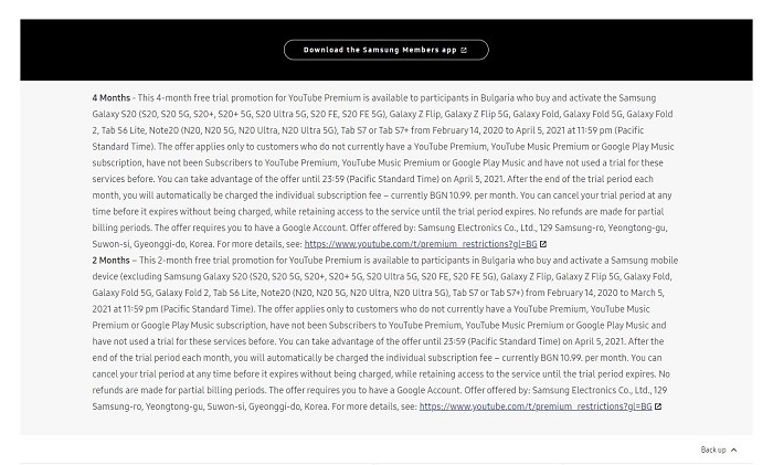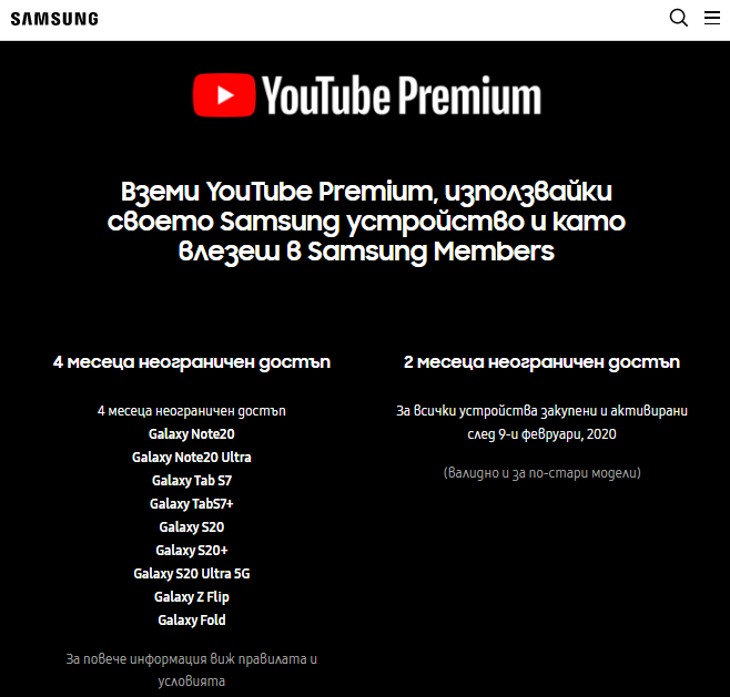 最近几个月,有传闻称三星正在为 Galaxy S20 系列智能机开发性价比更高的“FE”版本(即所谓的 Fan Edition),并且有望在 10 月份推出。该机据说采用了高通骁龙 865 芯片组、120Hz 高刷新率显示屏,但售价仅为 750 美元(约 5149 RMB)。现在,三星保加利亚网站上的 YouTube Premium 促销页面已经证实了 Galaxy S20 FE 的存在。