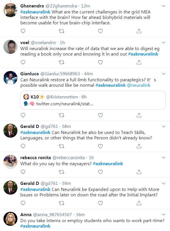 昨天开始,不少推特网友也在 #askneuralink 话题下向 Neuralink 提问。网友最为关注的问题是 Neuralink 面临的技术难点、具体落地时间和应用场景等等,而也有一些网友脑洞大开,做出一番畅想: