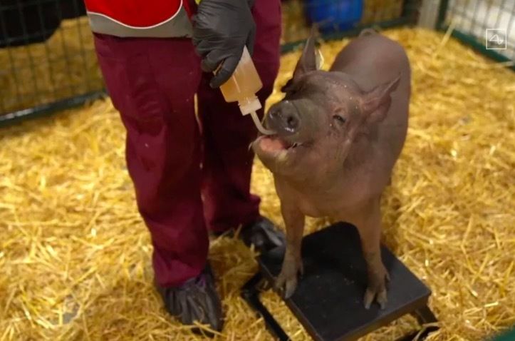 名为 Gertrude 的实验猪,脑机接口芯片就在它的大脑上,手术伤口已较难分辨出来
