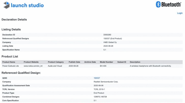 据外媒gsmarena报道,近日,他们发现诺基亚正在一款新的无线蓝牙耳机--Power Earbuds Lite。从获得的一张模糊照片和一份蓝牙SIG认证文档可以看出,Lite几乎已经准备好迎接它的黄金时间了。可以看到,相比于原始的Power Earbuds的蓝牙5.0芯片,新耳机升级的蓝牙5.1连接升级应该会提供更好的连接和更低的功耗。
