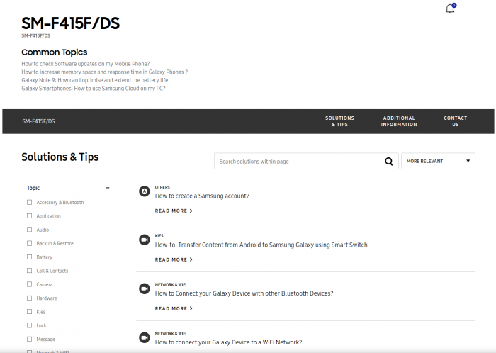 继几周前现身 Wi-Fi 认证联盟之后,型号为“SM-F415”的可折叠新机出现在三星印度官网,表明这款手机即将在印度市场推出。三星印度官网上已经罗列了 SM-F415F/DS 支持页面,确认了这款可折叠手机的存在。