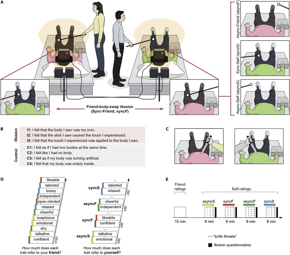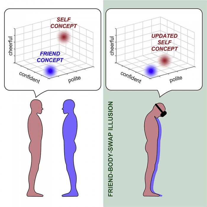 他们发现,当两位好友在感知错觉中“互换身体“时,他们对自身性格的认知会更加接近对自己朋友性格的认知。