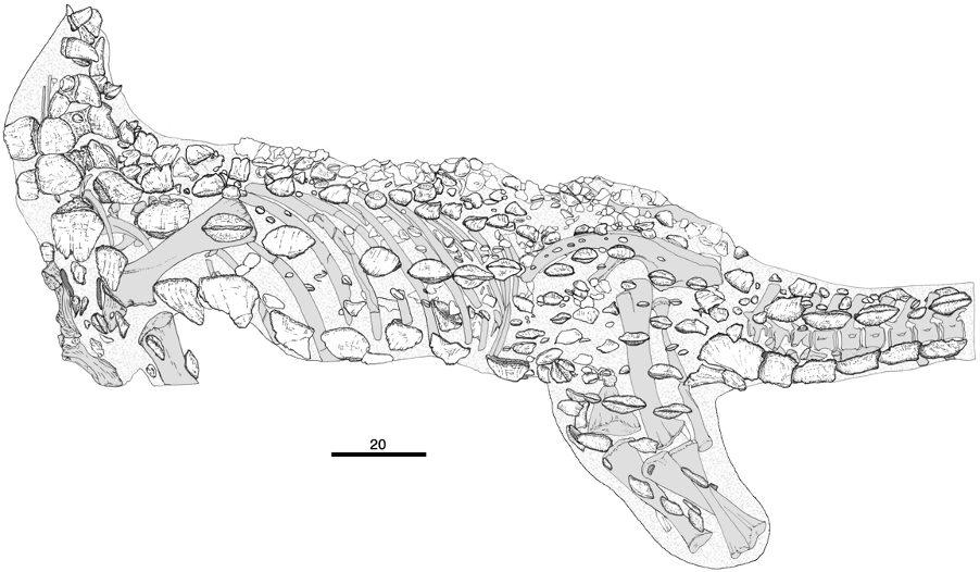 棱背龙还有一系列类似于螺柱的骨刺和板子来保护它的皮肤,这让科学家们得出结论,它是拥有脊柱板和尖尾的Stegosaurs和拥有铠甲皮和法杖状尾巴的Ankylosaurs的祖先。现在,完整的骨架显示,它只是甲龙类恐龙的亲戚。