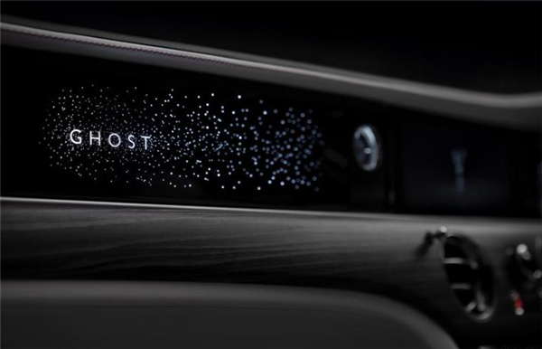 值得一提的是,新车副驾驶前的饰板是一块由850颗“星星”环绕的“GHOST”车名面板,在车辆启动时,这块星光面板会一同点亮,极致的奢华优雅。