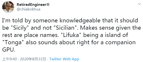 @chiakokhua 补充道,他从知情人士那里获悉,“Sicilian”的正确拼写应该是“Sicily”。
