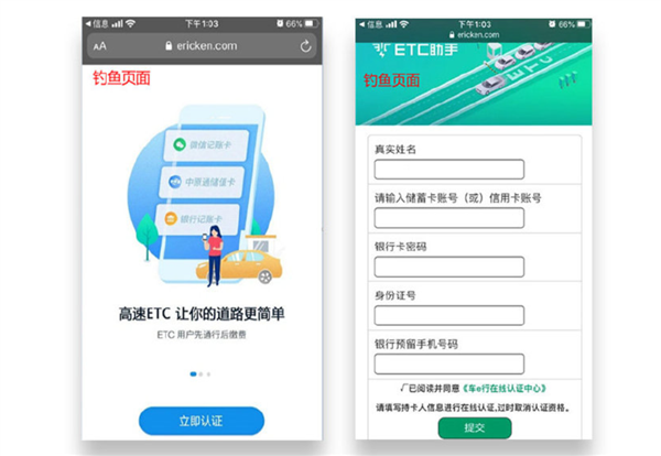 该短信里会附上一条链接,如果用户点击,就会进入钓鱼网站,被要求填写个人敏感信息,包括姓名、身份证、手机号、银行卡账号、银行卡密码、信用卡安全码以及用户访问IP等,一旦如实填写,你的钱可能就在不知不觉中被骗子转走了。