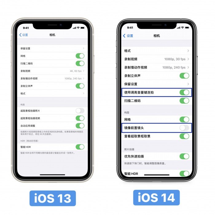 “更能拍”,主要体现在 iOS / iPadOS 14 对相机性能和设置进行了以下几项改动:
