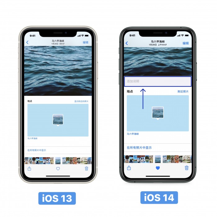 丨相片新增“说明”功能,添加了说明的照片可以方便快速检索,而且说明的内容支持同步至 iCloud。