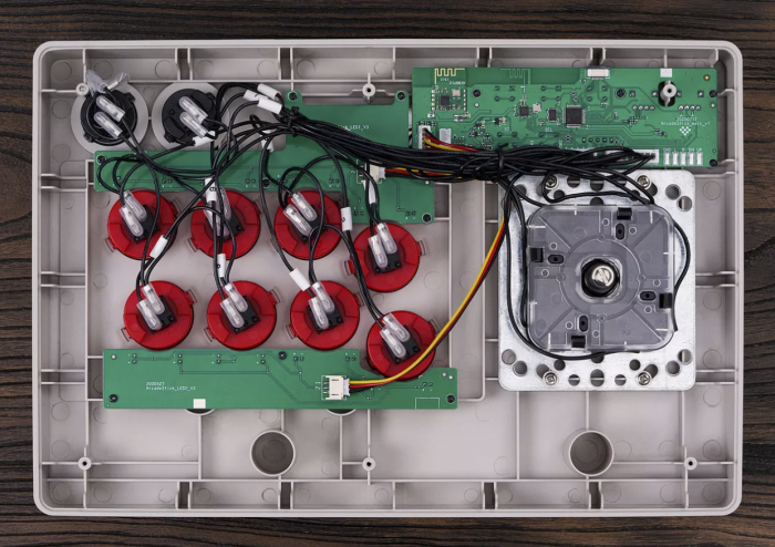 这款无线街机摇杆通过隐藏在其底部的接收器,支持蓝牙和2.4GHz无线,也支持直接用USB-C数据线,内建1000mAh充电电池。8BitDo声称,使用2.4GHz无线接收器,一次充电可以持续使用40小时,使用蓝牙,一次充电可以持续使用30小时,无线范围超过30英尺。