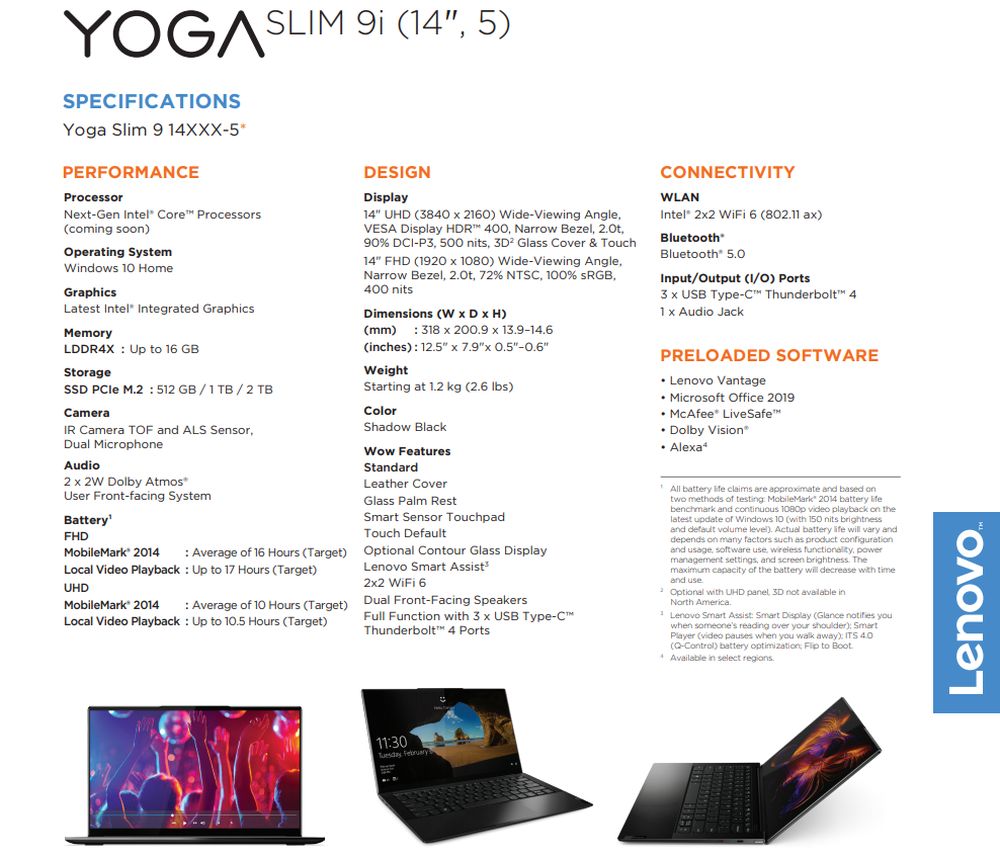 在内部规格上,联想 Yoga Slim 9i 仅提供英特尔处理器版本,在产品规格上仅显示“下一代英特尔处理器”,应该是 Tiger Lake 。