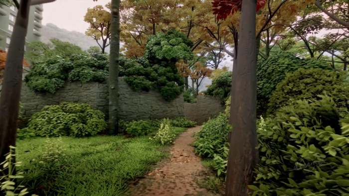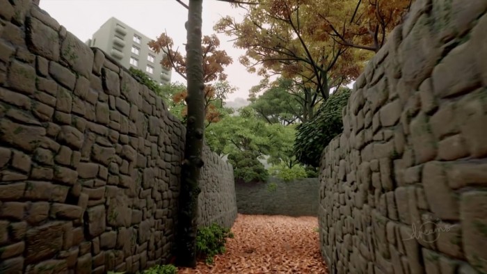 从视频中可以看到公园场景的完成度很高,细节逼真。树木叶子、石头泥土等表现效果出色,远处还有山脉和瀑布,景色非常迷人。在公园行走时,仿佛有微风在轻拂脸庞。有人表示这是用《梦境》做的?太逼真了。还有人说看了这个,像置身于现实世界。