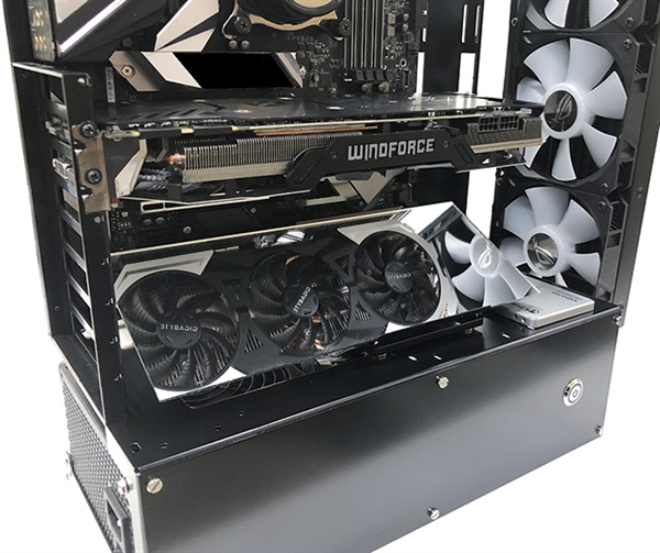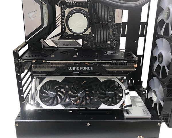 日本长尾制作所推出的这个显卡魔镜,放在显卡下方的位置,就可以反射出完整的显卡图像了,随时可以查看显卡状态。