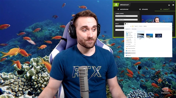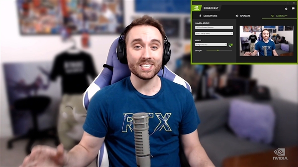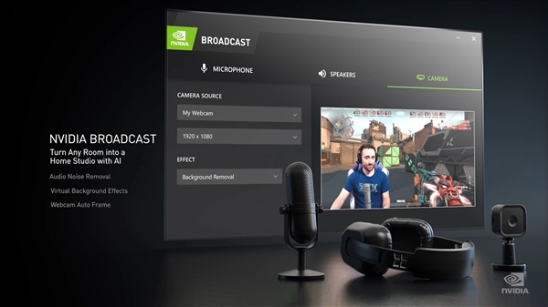 实现大咖级直播。玩家可通过这个通用插件,将自己的家改造成直播室,支持RTX加速的人工智能效果,比如噪音消除、虚拟背景、自动框显,从而提升麦克风和网络摄像头的效果。