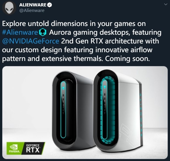 此外,戴尔旗下的游戏PC品牌Alienware宣布Aurora台式PC产品线将配备新近宣布安培架构显卡: