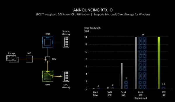 VentureBeat的编辑声称PS5及XSX尚未面市就被皮衣教主碾压成灰,当前老黄唯一的对手就是自己。姑且不论受制于AMD方案的PS5及XSX在光追和DLSS方面望尘莫及,唯一聊以自慰的定制SSD方案也被核弹黄的RTX IO快速追上。