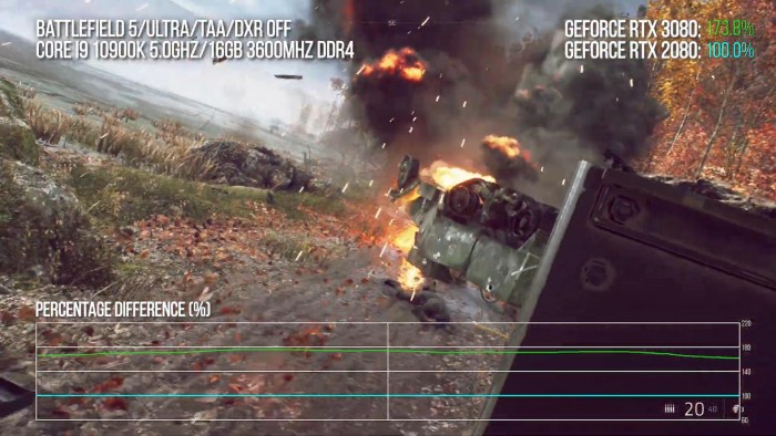 今日(9月2日)英伟达正式发布了全新一代基于Ampere安培架构的GeForce RTX 30系列显卡,首发包括RTX 3090、RTX 3080、RTX 3070三款型号。现在外媒Digital Foundry放出RTX 3080显卡开箱视频,与RTX 2080进行了对比,并试玩了部分游戏,展示了新显卡的性能。