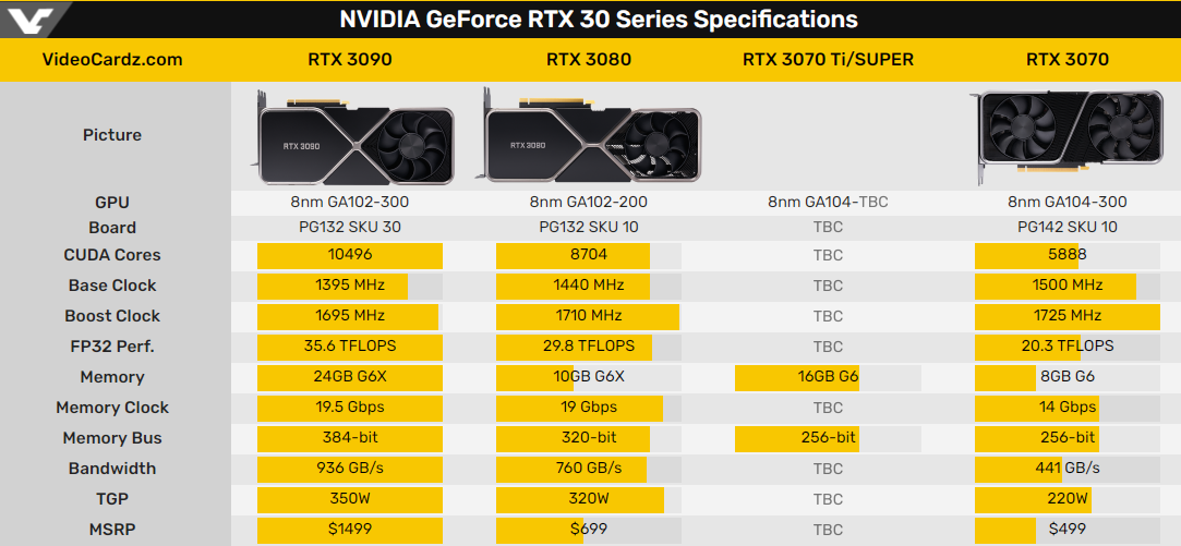显然,RTX 3070 Ti的性能会介于RTX 3080和RTX 3070之间,预计内建6144个CUDA核心,256bit位宽,价格应在549~599美元之间,国内4500元左右。