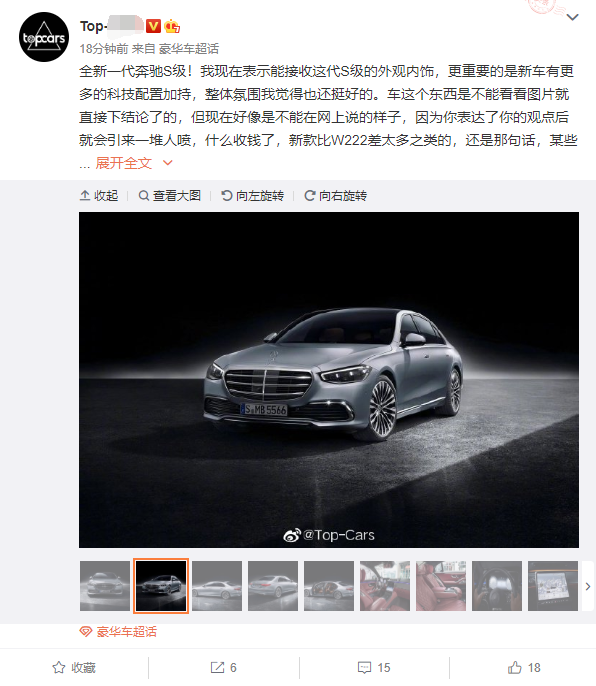 作为豪华大型车领域的标杆,奔驰S级一直都是各大车企争相追逐的对象。根据规划,全新一代奔驰S级将于今晚发布,刚刚有网友曝光了一组新车官图,先一睹为快。作为换代车型,全新S级内饰和外观变化巨大。首先外观采用了全新家族设计语言,大面积的进气格栅更加圆润,格栅内部粗壮的镀铬饰条以及立标,保持了S级一贯手法,有种君临天下的感觉。