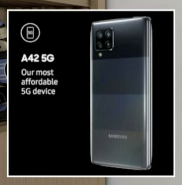 三星并没有透露 A42 5G 完整规格,但确认了部分规格。这款智能手机装备了 6.6 英寸的 Super AMOLED 屏幕,正面有个水滴刘海,机身背面的四摄被放置在方形的摄像头模块中。