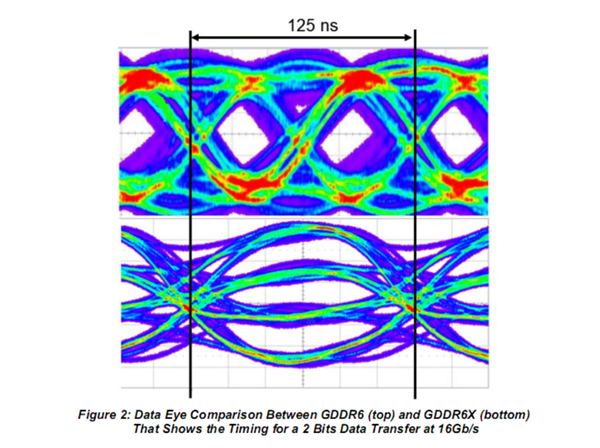 GDDR6(上)、GDDR6X(下)数据眼图