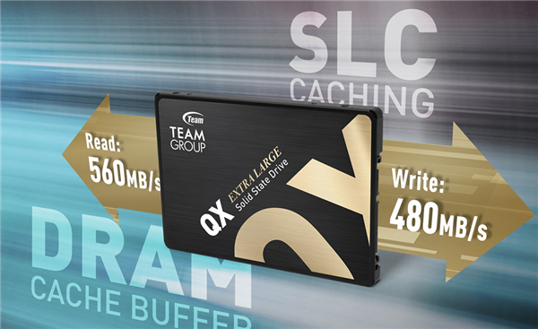 性能方面,十铨QX系列硬盘读取速度为560MB/s,写入速度450MB/s,不过随机性能没公布,估计也不会多好。