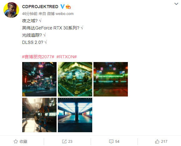 《赛博朋克2077》PC版配置要求尚未公开,本作原计划今年4月发售,但后来跳票。有网友表示“去年差点为了今年4月的2077买了新显卡,还好跳票了”。
