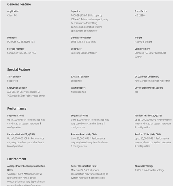 毕竟都用上X570和Z490了,PCIe 4.0可不能浪费啊。这款硬盘将会有250GB、500GB以及1TB三个版本,不过目前三星暂未公布 980 PRO 的售价和发售时间。