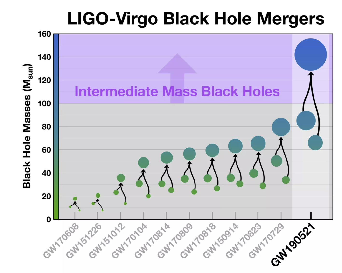 这样的发现对天文学家来说可能是个大发现。到目前为止,科学家们已经能够探测和间接观察到两种不同大小范围的黑洞。较小的种类是我们太阳质量的5到100倍之间。在光谱的另一端,则是超大质量黑洞,于星系中心的那种黑洞,其质量是我们太阳质量的数百万倍和数十亿倍。古往今来,科学家们一直在试图找出介于两者之间的黑洞,即所谓的 "中间质量黑洞",它们的质量从太阳的100倍到1000倍不等。天文学家确信这种黑洞一定存在,但一直没有找到任何直接证据证明它们的存在。麻省理工学院LIGO实验室研究引力波的助理教授Salvatore Vitale表示:"人们找不到任何中间黑洞,这一直是个令人困惑的问题。它们是具有几十个太阳质量的黑洞和数百万个太阳质量的黑洞之间缺失环节,人们在这两者之间找不到任何东西,这总是有点令人费解。"