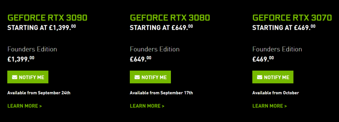 NVIDIA决定GeForce RTX 30 GPU产品采用三星8nm工艺的主要原因之一是,该公司将允许NVIDIA克服从台积电购买的固有产能限制。然而不幸的是,Tweak Town网站报道,直到年底之前,NVIDIA GeForce RTX 30 GPU库存都会很稀少,如果你想在那之前加入安培GPU的热潮,你最好提前预购。