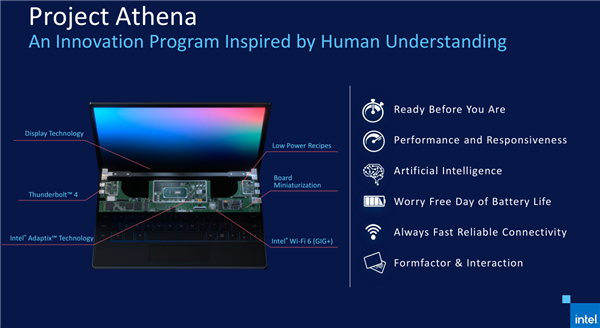 笔记本未来还会如何发展?去年Intel联合500多家业界厂商推出了“雅典娜计划”,要重新定义笔记本。今天凌晨的发布会上,Intel又宣布了2020年的“雅典娜计划”及全新的EVO认证。Intel的“雅典娜计划”不是一个具体的标准,而是一项长期的过程,从去年开始每年都会有新的变化和要求,核心目标是不断提升用户的笔记本使用体验。