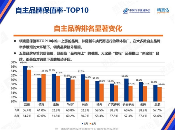 而领克品牌则涨幅明显,3年近62.6%的保值率,也让其成为自主品牌第二,表现优异。