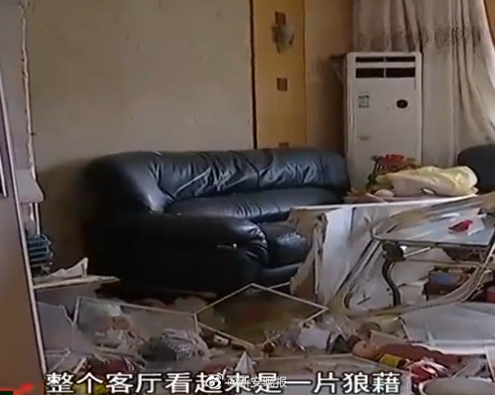 这款西门子双开门冰箱目测是由内部向外的炸开,由于受到强烈的爆炸冲击,我们可以看到顶部的射灯和客厅的吊灯已经脱落,旁边的沙发被炸到了对面,几米开外的厨房玻璃门以及阳台窗户都被震碎,还好当时客厅无人,否则后果不敢设想。
