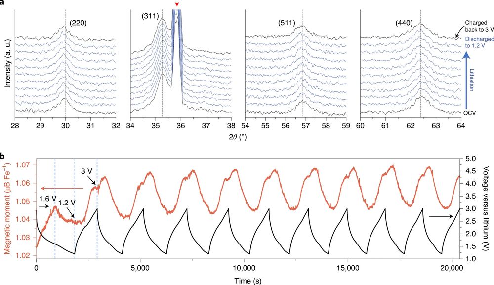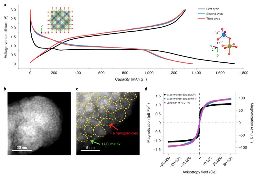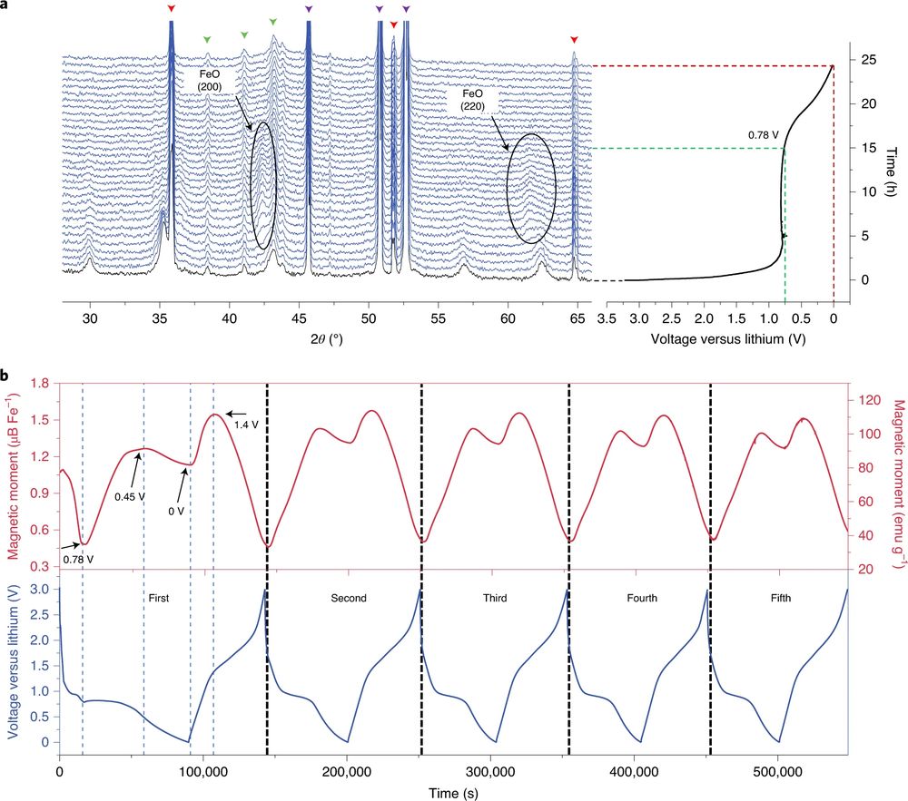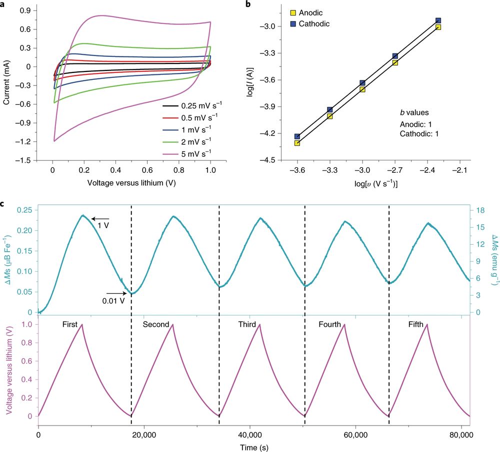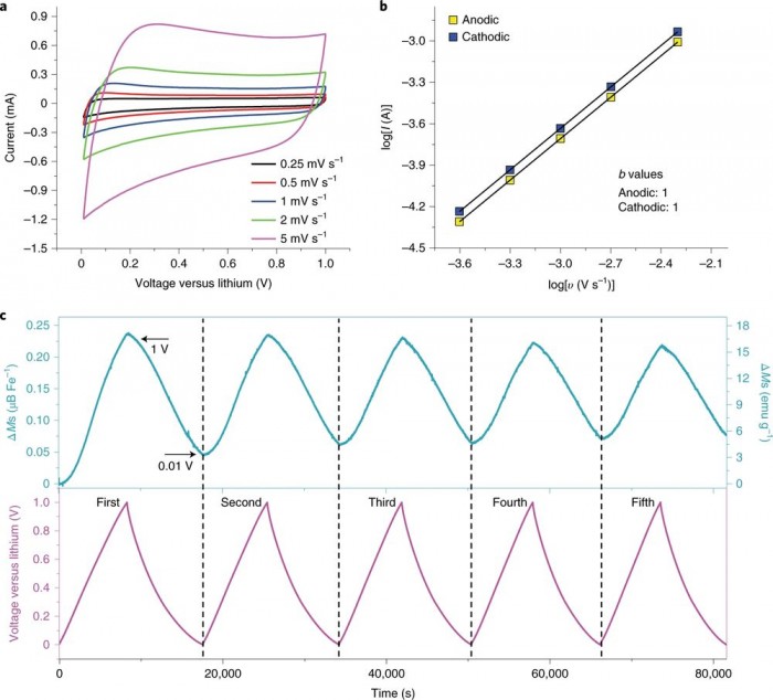 Yu 指出的方法是原位磁力测量。这是最基本的实时磁监测系统。通过这个系统,被监测材料内部电子结构中磁性的变化,有助于量化材料的电荷容量。该研究表明,某些材料表面的电荷容量才是电池容量超过标准的主要来源。这种附加的表面电容存在于 Fe₃O₄、NiO、FeF₂ 和 Fe₂N 体系中。