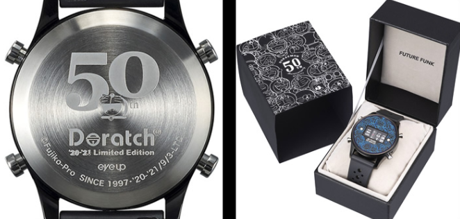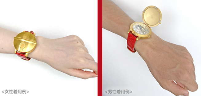 ·本次推出的《哆啦A梦》50周年纪念腕表分为2种款式,一种采用蓝胖子佩戴的铃铛外盖,合上盖子就宛如蓝胖子的小铃铛,另一款虽然没有盖子,不过独特的显示时间方式同样会令粉丝心动,两款手表背面都刻有50周年纪念标识,实用收藏价值十足。