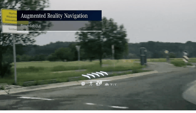 此外,第二代MUBX还实现AR-HUD增强现实抬头显示功能。导航过程中,系统会将箭头、街道名称以AR的形式投射到风挡上,尤其是转弯方向的AR箭头非常适合岔路口帮助驾驶员分清楚方向。