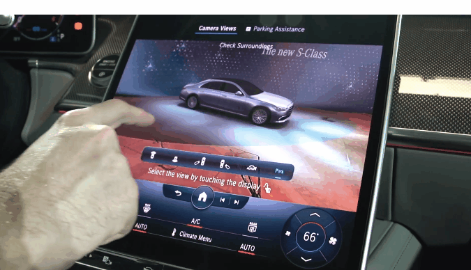 有了强悍的硬件支持,奔驰S实现了非常流畅的交互体验和炫酷视效。从外媒的实际上手来看,屏幕的加载几乎没有延迟,360度摄像头功能允许驾驶员在屏幕上旋转车辆以查看围绕S级的任何角度,而且车辆动画与周围实景结合的十分和谐。